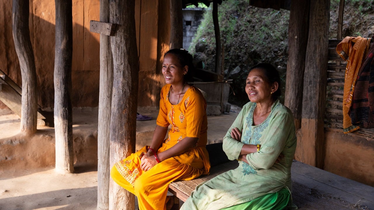 A woman (left), with her mother-in-law, at their home in rural Nepal. Two years ago, the woman had a safe abortion with the help of a nurse/midwife. She continues to receive sexual and reproductive health services from the same nurse.