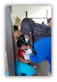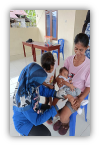 “It’s hard to conduct house-to-house/catch-up immunization to reach unimmunized children because many parents in our area frequently go to the forest frequently, often taking their children along with them. This makes it difficult to find them at home for vaccination. To ensure complete immunization of children, we educate parents about the effectiveness of timely immunization and the safety of multiple injections. Some parents worry about the side effects of administering more than one injection to their children at one visit,” said Hairia, the Immunization officer of Puskesmas Baru. This is a common issue that has been raised by immunization officers based on their experience. The immunization officer needs to share their knowledge and encourage parents to consider multiple injections and complete basic immunization for their children.